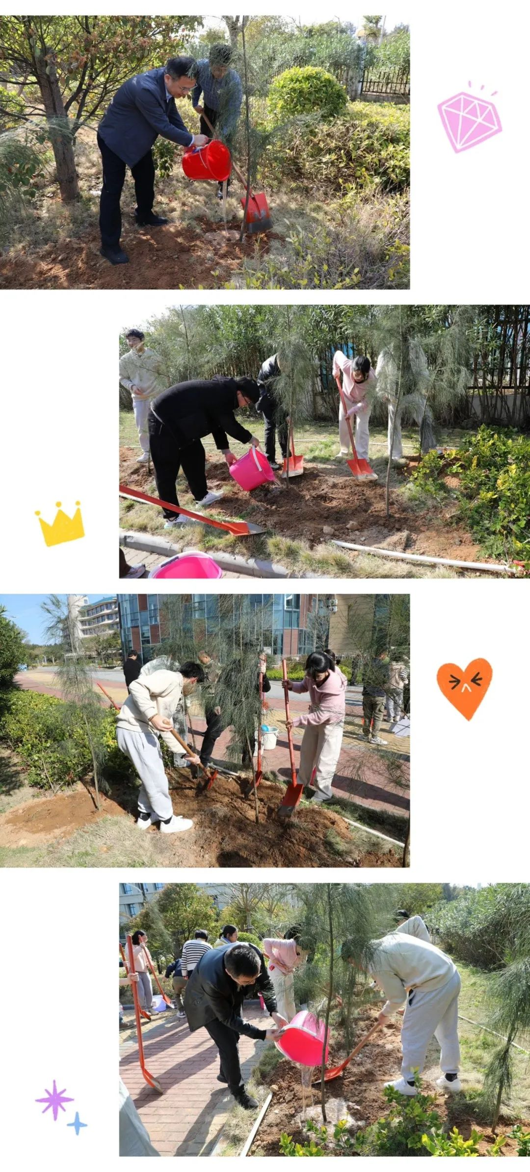 活動(dòng)現場(chǎng),大家熱情高漲、鼓足干勁,以黨、團支部為單元,分工協(xié)作、互相配合,有的揮鍬鏟土,有的扶樹(shù)培土,有的提桶澆水,十分細致認真。在大家的共同努力下,一株株新栽下的樹(shù)苗迎風(fēng)挺立,在春日下煥發(fā)出勃勃生機和綠色希望。