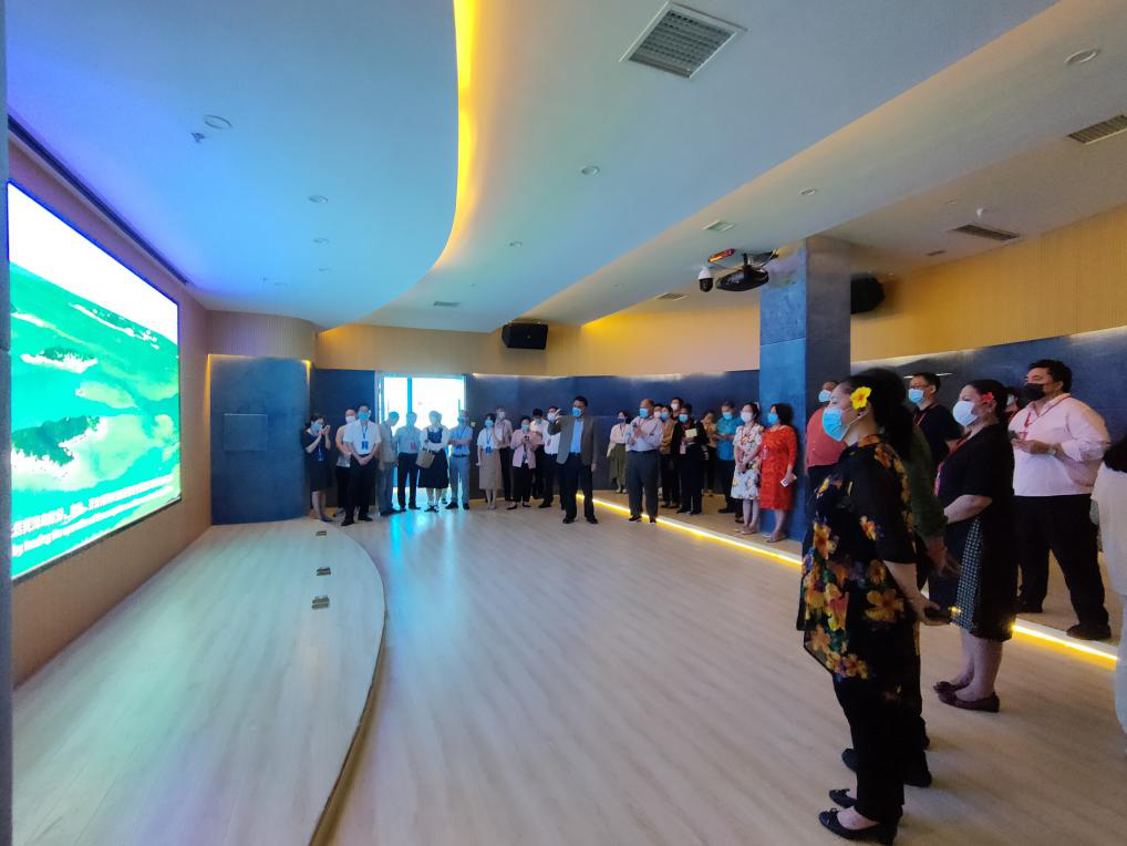 使節團聽(tīng)取了中心總體規劃的介紹,并參觀(guān)了海島科普館,觀(guān)看了中心宣傳片。中心曾千慧博士向使節團介紹了我國海島管理的模式、海島生態(tài)保護和經(jīng)濟發(fā)展的現狀與成就。在全球海島分布浮雕地圖面前,通過(guò)觸屏投影,各國大使觀(guān)看了自己國家的自然風(fēng)光、人文歷史等照片和信息,薩摩亞駐華大使塔普薩拉伊·特里·托歐瑪塔表示,“看到自己國家的照片和有關(guān)信息出現在海島科普館,真的感到很親切,很驚喜!”