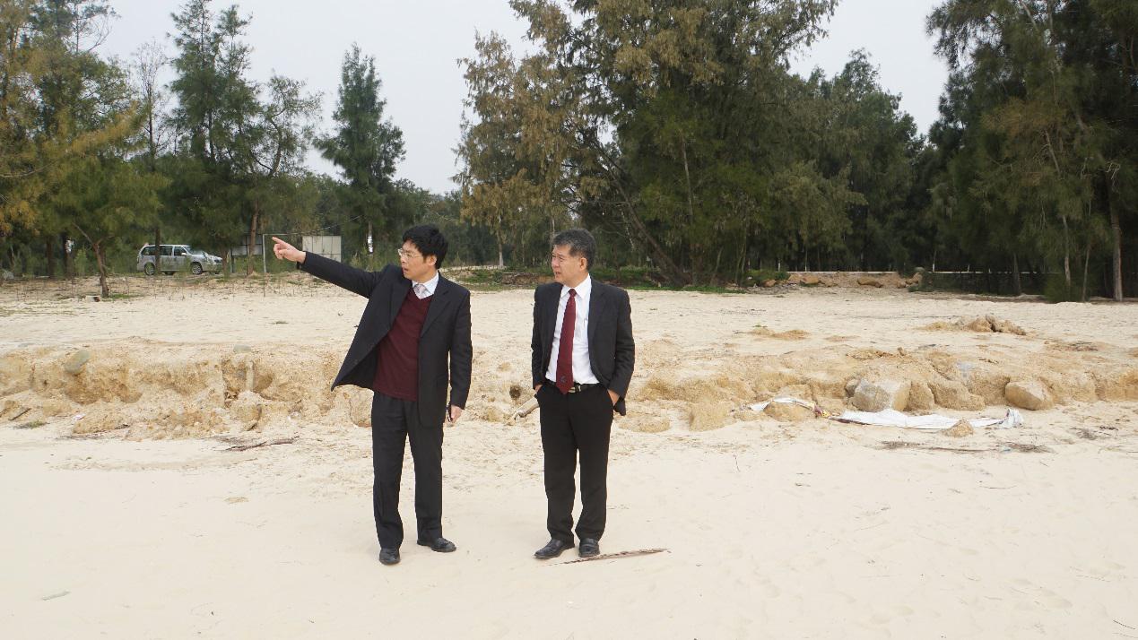 會(huì )議結束后,蔡鋒主任帶領(lǐng)訪(fǎng)問(wèn)團一行實(shí)地考察了田美澳沙灘,介紹了壇南灣整體規劃情況,并就海岸帶整治、修復交換意見(jiàn)。