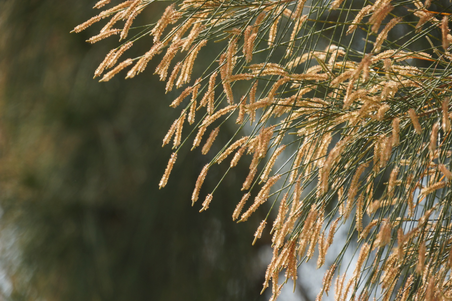 用“低調做樹(shù),高調做事”來(lái)形容木麻黃一點(diǎn)也不為過(guò),大多時(shí)候人們覺(jué)得她長(cháng)得很普通,普通到全身上下暗淡無(wú)光,開(kāi)花時(shí)既沒(méi)有出挑的顏色,也無(wú)碩大的花朵,時(shí)常有人誤以為那一串串的花序,是樹(shù)上掉下來(lái)的毛毛蟲(chóng)而驚慌失措。甚至還有不少人會(huì )把木麻黃當成馬尾松,雖然她們都長(cháng)著(zhù)形似馬尾的長(cháng)辮子,但實(shí)際上并非一家人,前者是木麻黃科的,屬于被子植物,后者是松科的,屬于裸子植物。