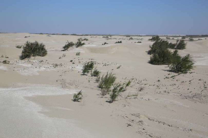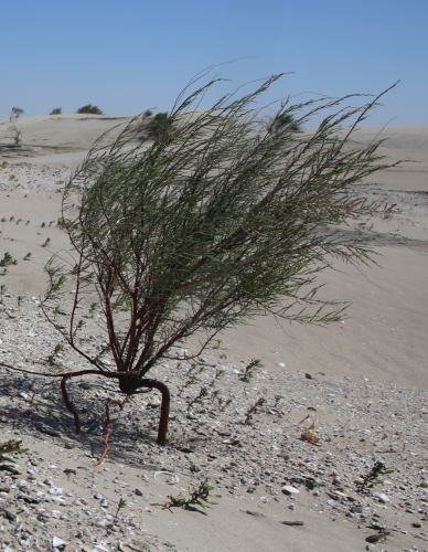 河北唐山菩提島海岸沙灘上生長(cháng)的檉柳