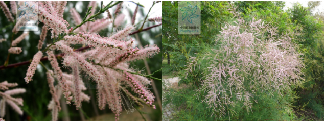 檉柳屬植物通常為灌木或喬木,多分枝,幼枝無(wú)毛;枝條有兩種;一種是木質(zhì)化的生長(cháng)枝,經(jīng)冬不落,一種是綠色營(yíng)養小枝,冬天脫落?;ㄐ》奂t色,種子被白色柔毛,每年可開(kāi)花1-3次,集中在4-9月。
