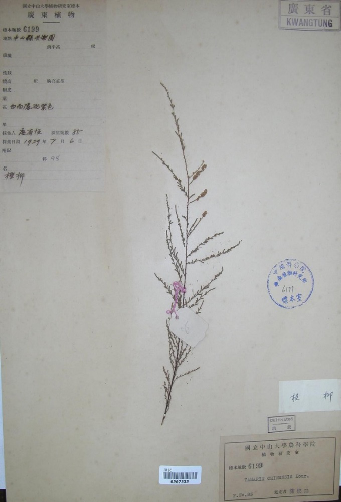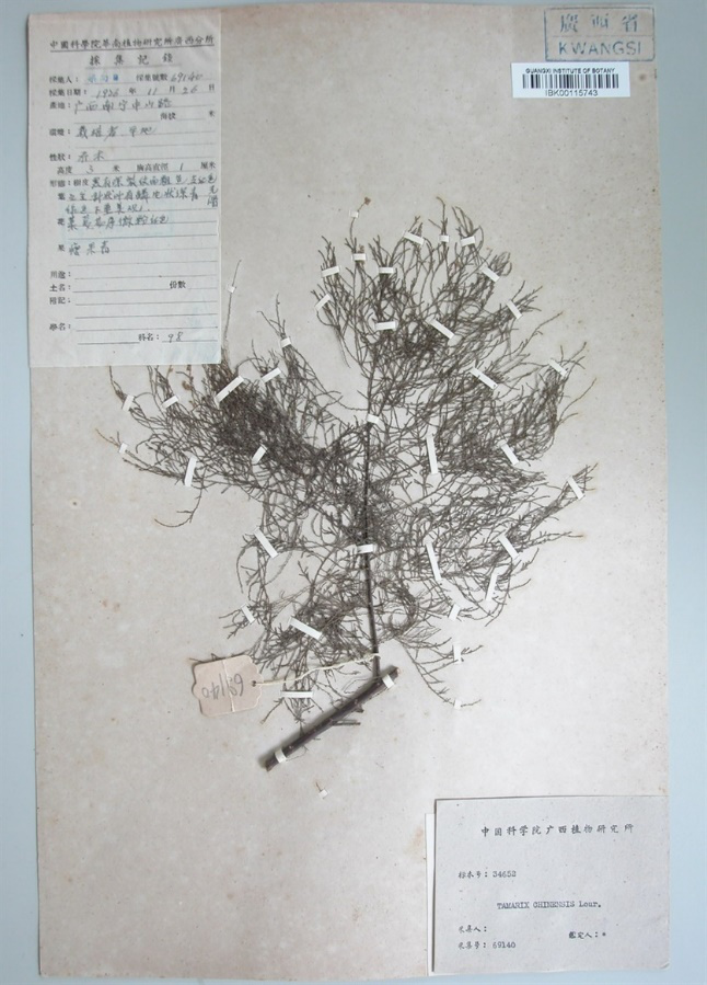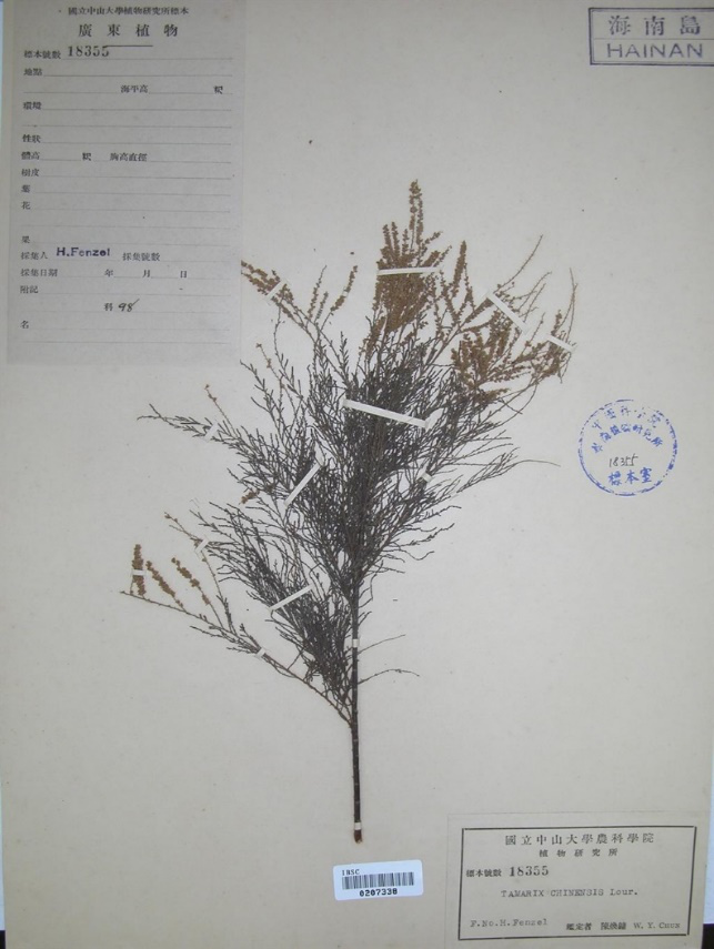 海南記錄的檉柳標本-由陳煥鏞院士鑒定,可惜未記錄具體年份