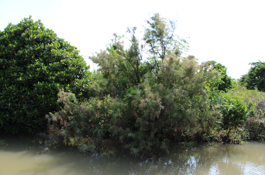 廣州南沙濕地公園水岸邊生長(cháng)的檉柳