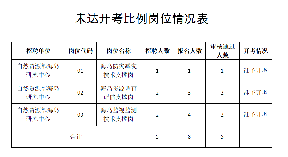 經(jīng)研究決定,準予以上3個(gè)未達開(kāi)考比例要求崗位開(kāi)考。