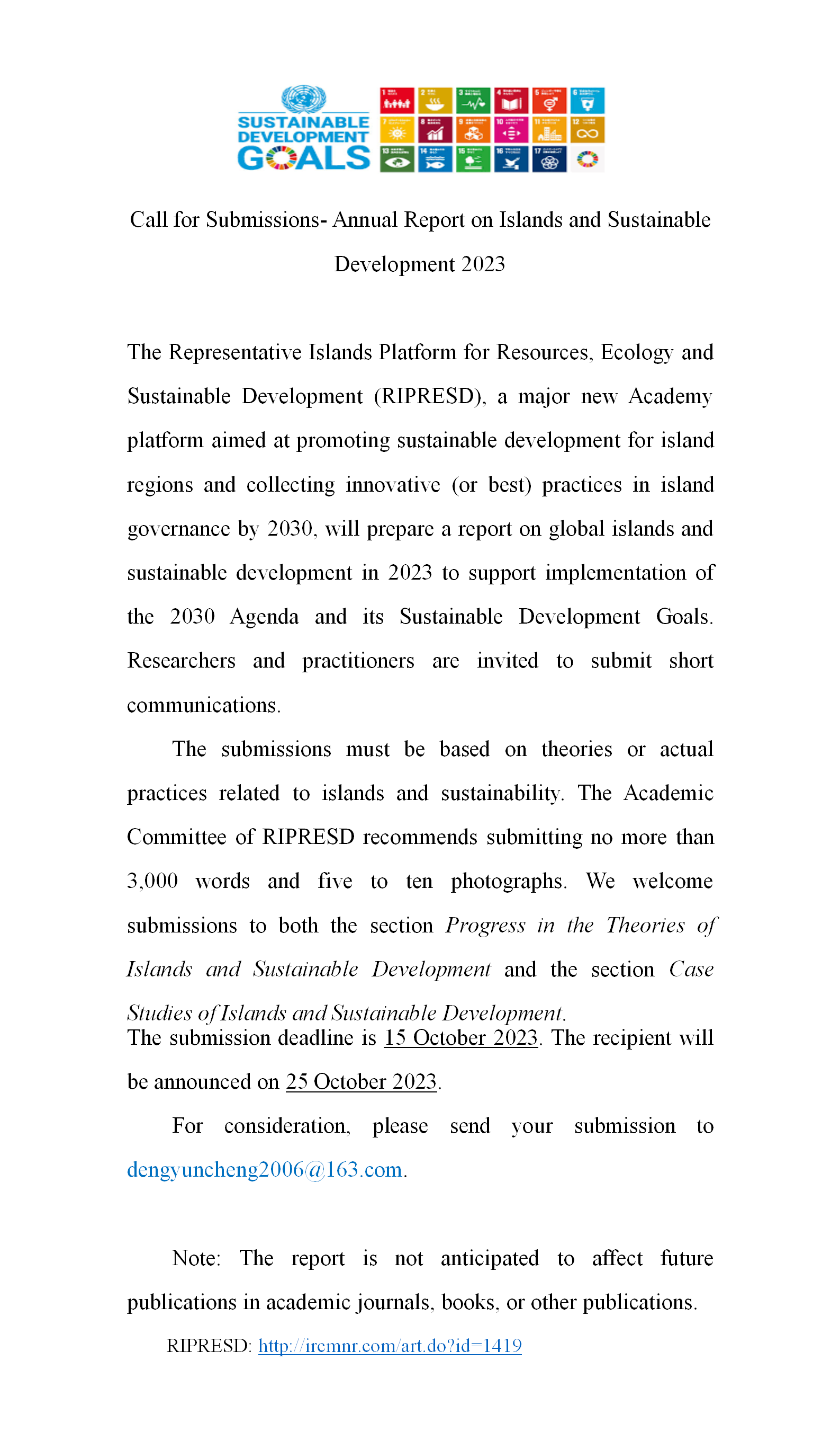 Call for Submissions- Annual Report on Islands and Sustainable Development 2023
